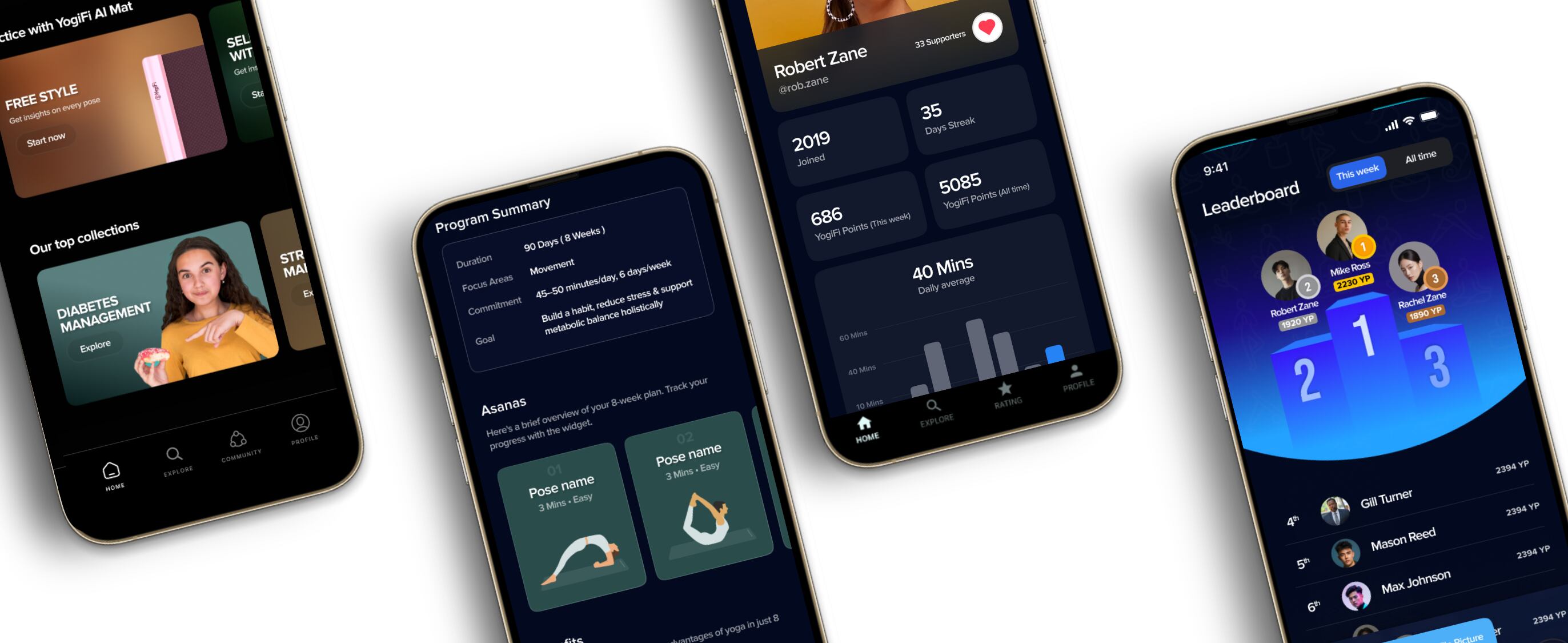 ヨーガ・瞑想・セラピー・アーサナ(ポーズ)など、段階別のカリキュラムを搭載。初心者から上級者まで対応。