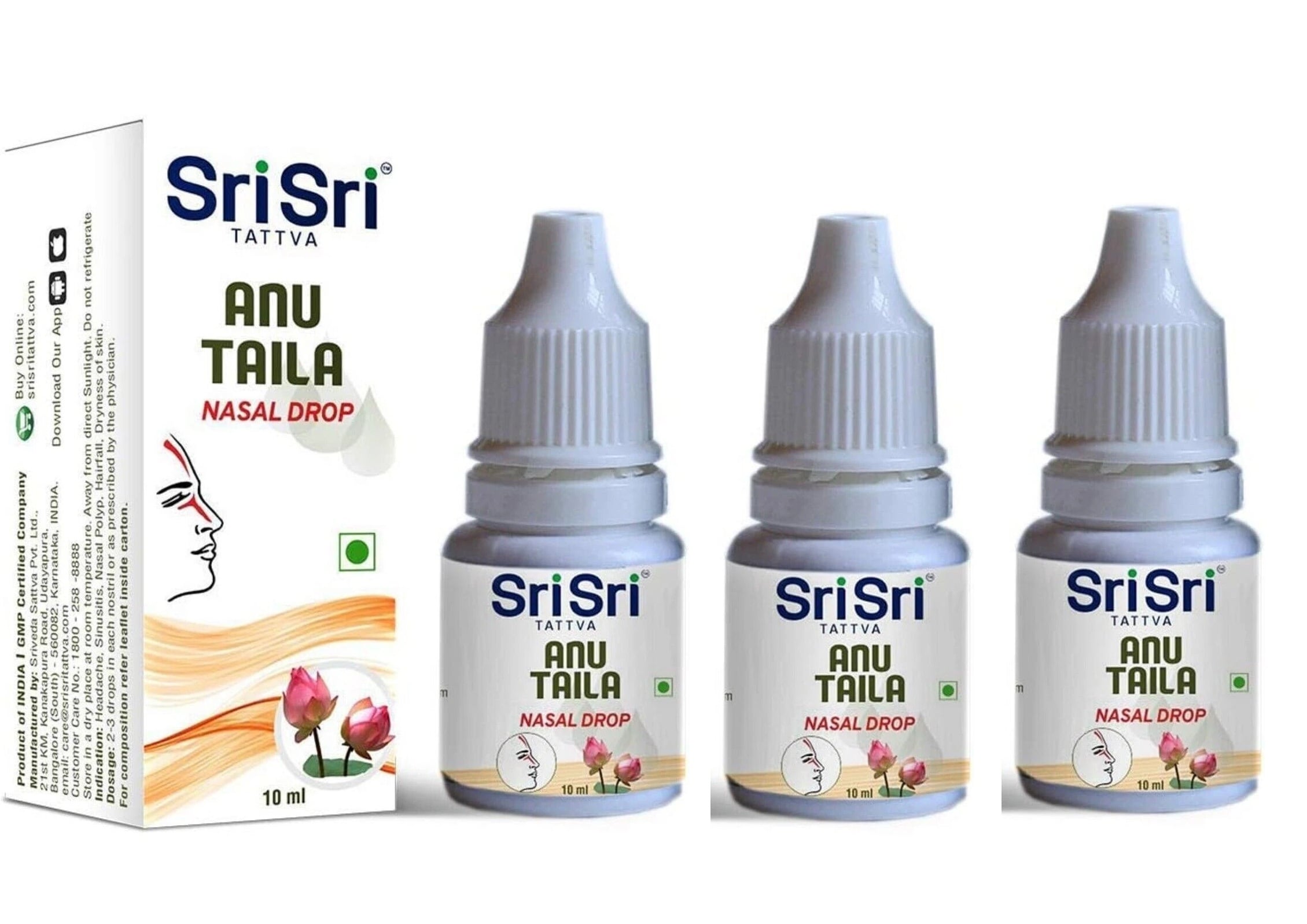 【個人輸入代行】 Shri Shri Ayurveda アヌ・タイラム(点鼻オイル)10ml - 鼻・頭のスッキリをサポート(3本セット)