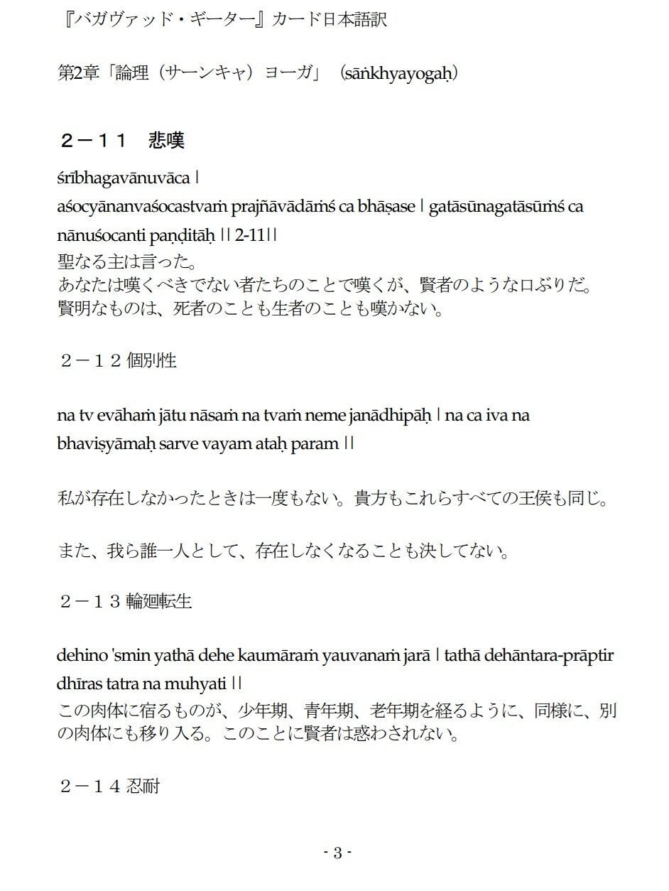 「バガヴァッド・ギーターのメッセージカード」の日本語訳です。